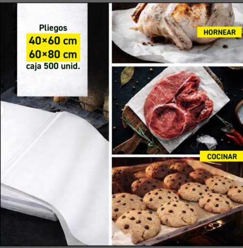 Rollos de papel para hornear con recubrimiento siliconado antiadherente por ambos lados.